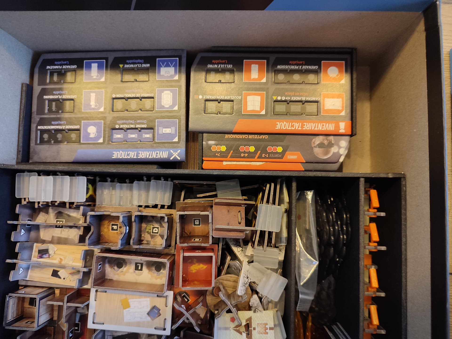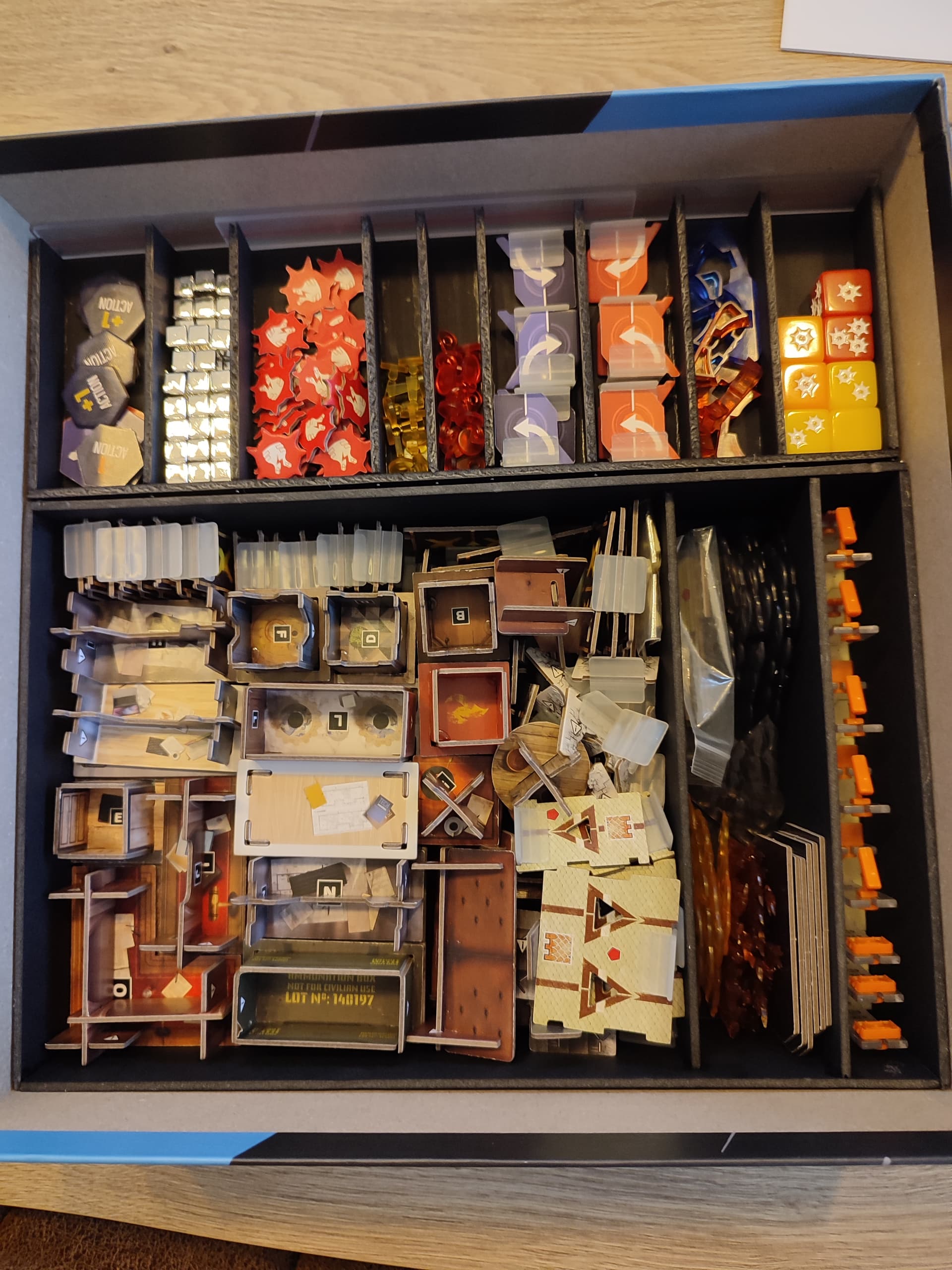 J’ai fait un insert un peu à l’instinct, sans plan, c’est la 1ere fois que je fais un insert pour un jeu. Cela peut vous aider dans le rangement. C’est certainement optimisable.