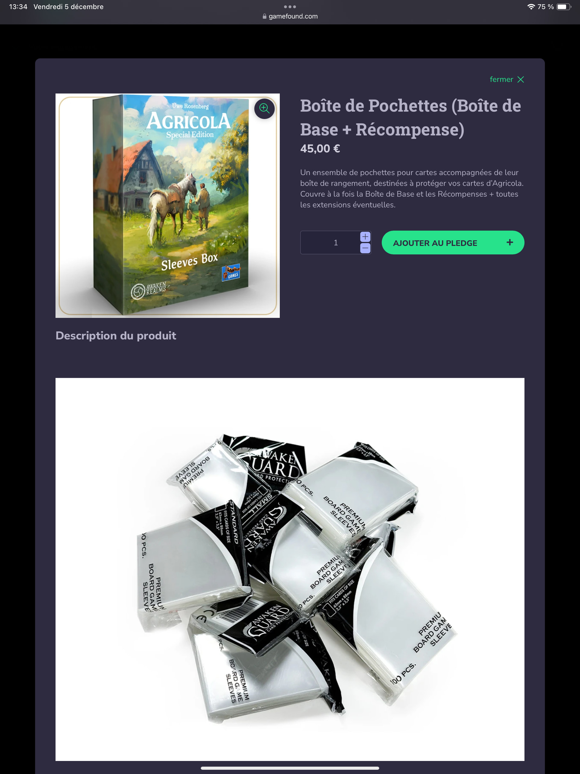 Ayant rejoué à Agricola, je me dis que la version de base que j’ai me suffit amplement et je souhaite annuler mon pledge (tant pis je perdrai un peu d’argent mais je gagnerai de la place!). Une résolution de nouvelle année!