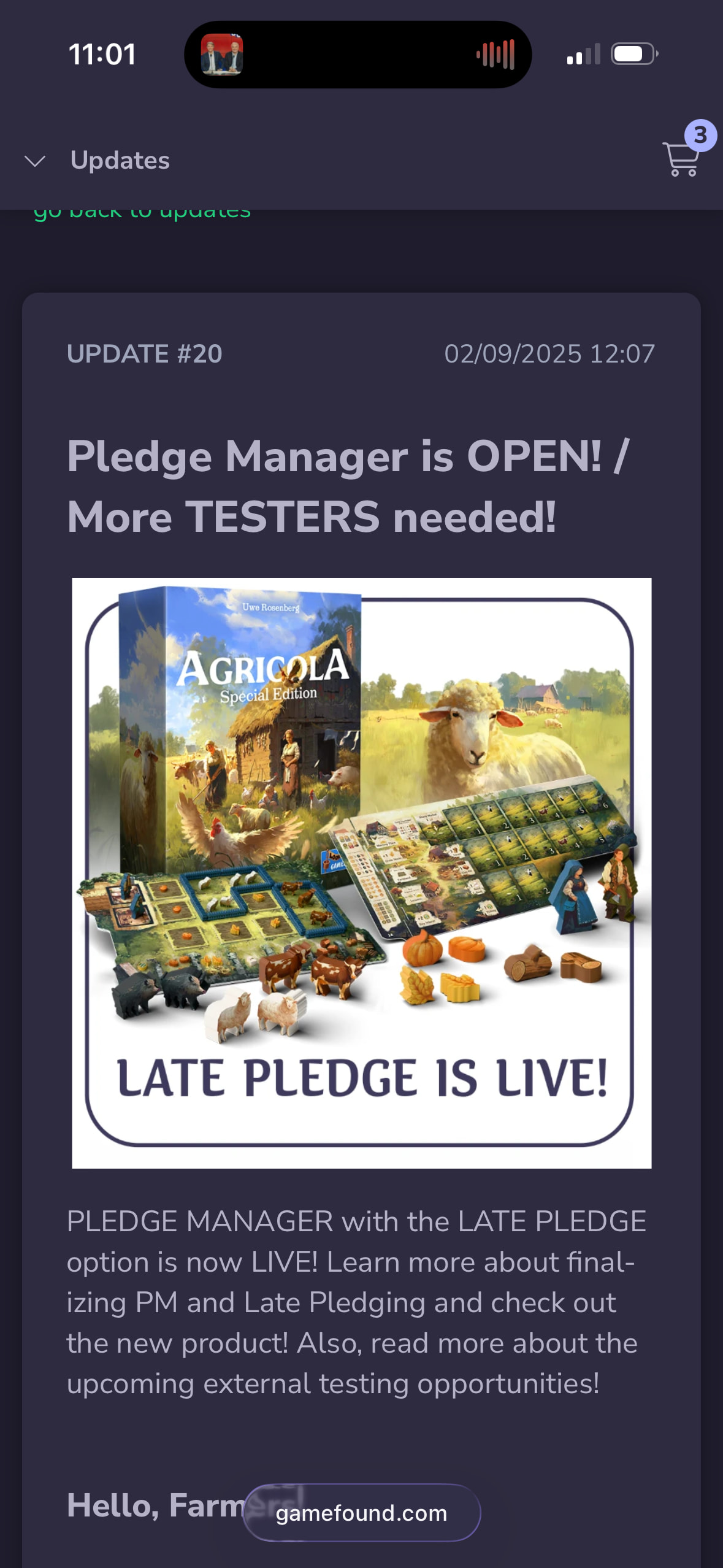 je ne lis quasiment jamais les updates (d’autant plus que les mails d’update GF, contrairement à ceux de KS, ne contiennent pas l’update mais un lien vers l’update sur GF, et ca aussi ca me saoule, car au taf GF est bloqué)