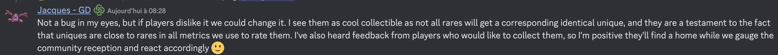 En tout cas un dev a dit sur discord que c’est pas un bug à ses yeux (je trouve ses arguments ultra faibles, ça sent plus la boulette qui avait peu de chances d’arriver qu’un truc volontaire).