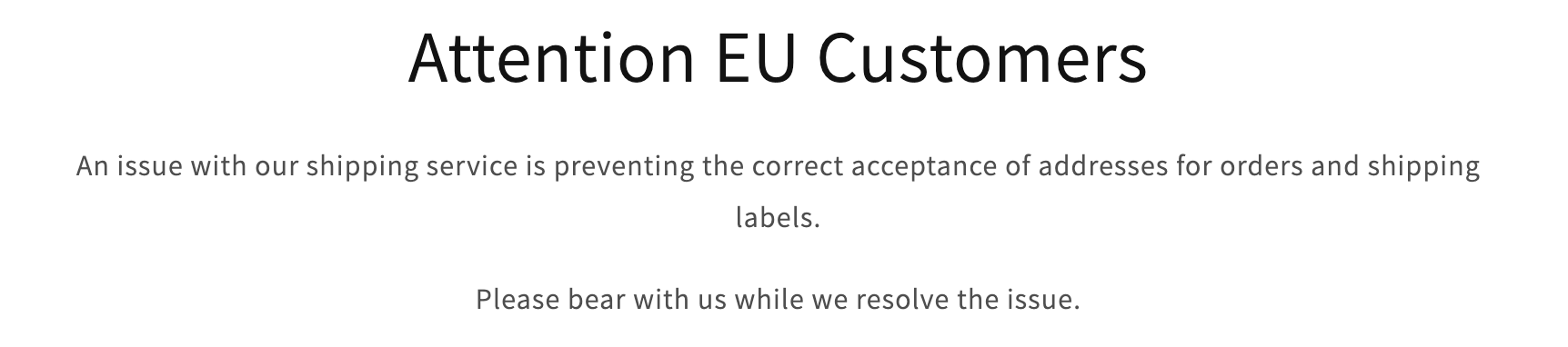 (message sur la home de leur boutique en ligne)