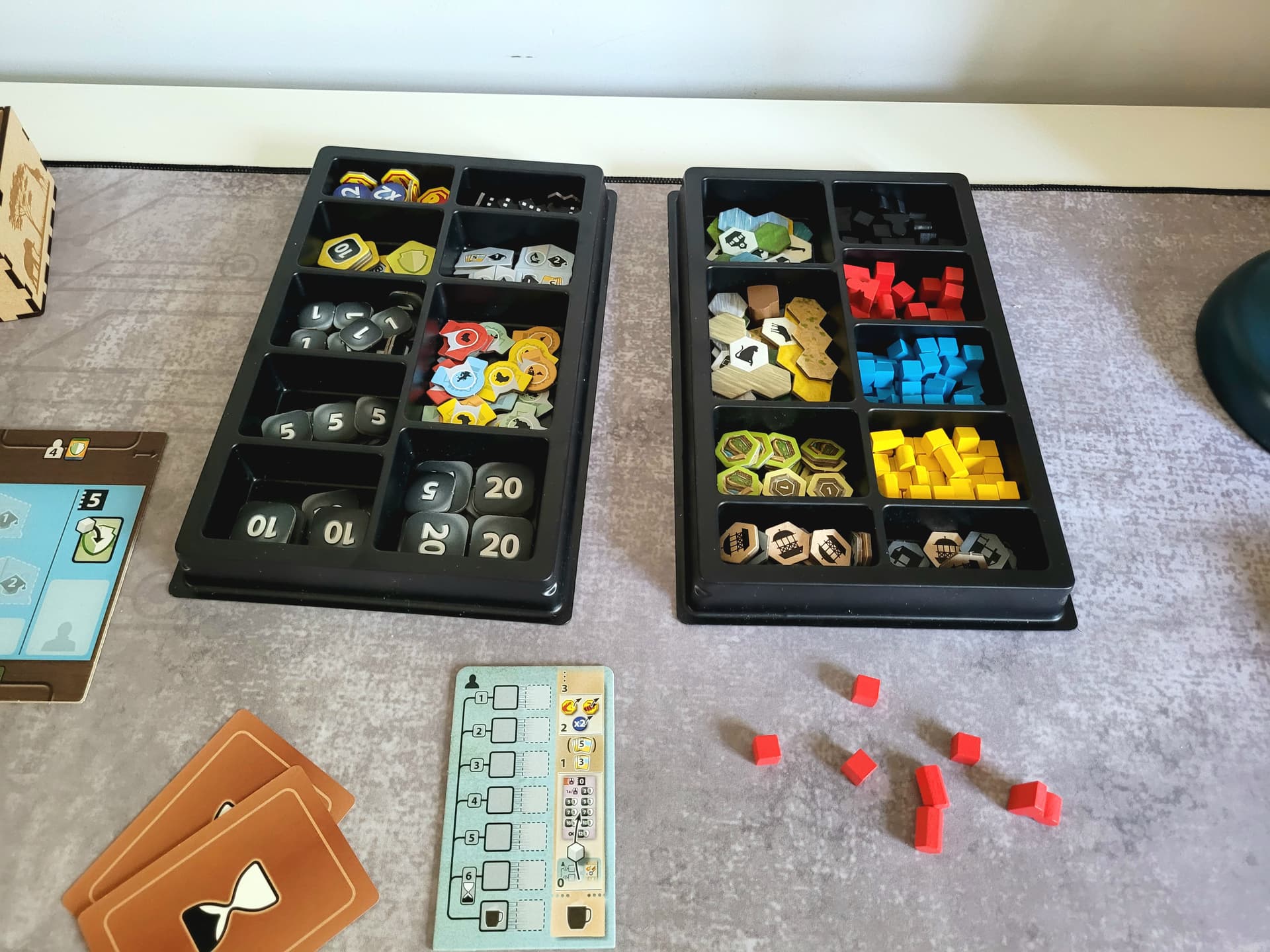 Pour les cartes et 1 bac par joueurs dans lequel je place les marqueurs et les cartes action.