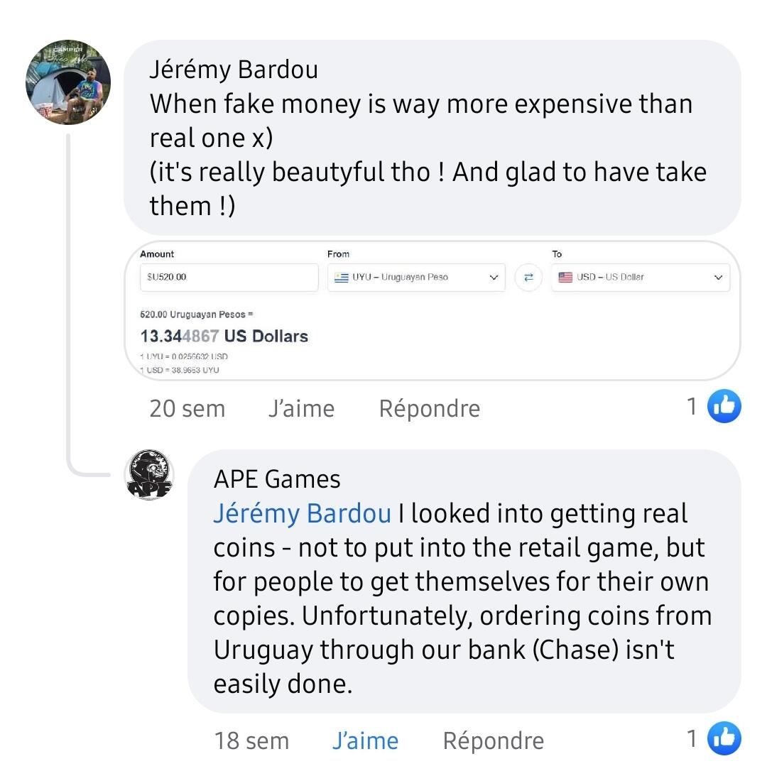 Alors figure toi que je m’étais amusé à calculer, parceque c’est basé sur le design des pièces d’Uruguay, et en fait ça reviendrait moins cher de prendre des vraies pièces uruguayenne xD