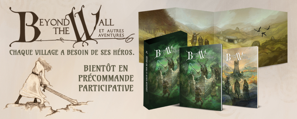 Beyond the Wall est un jeu de rôle médiéval-fantastique qui s’inscrit dans la mouvance OSR (Old-School Renaissance) dans la mesure où il s’inspire des mécaniques de la première édition du grand ancien (Donjons et Dragons) et son fameux D20. Certains se souviendront peut-être avec nostalgie, ou non, des tableaux listant les valeurs de sauvegarde en fonction du type de danger, poisons, souffles, polymorphie, sorts, ou encore objets magiques….