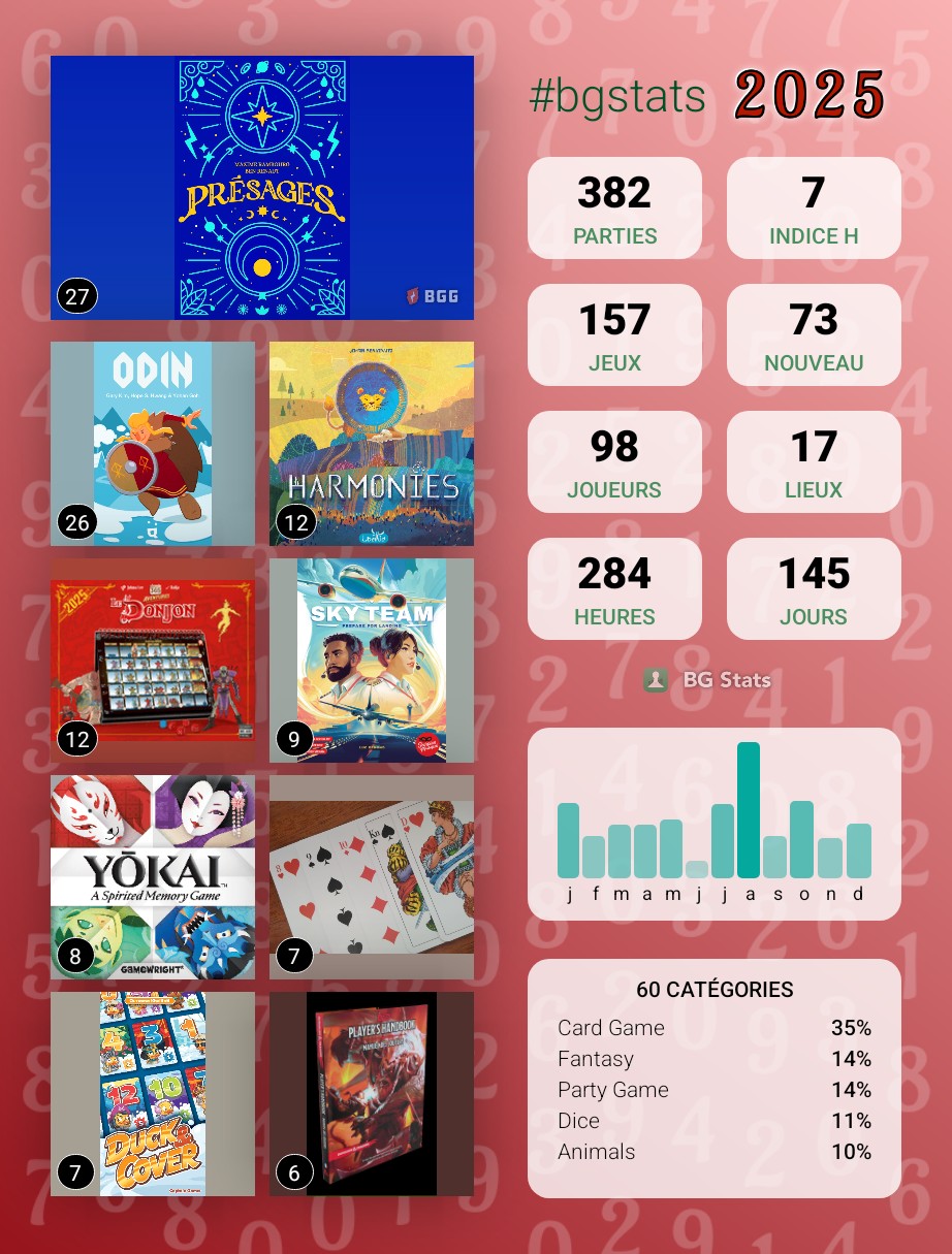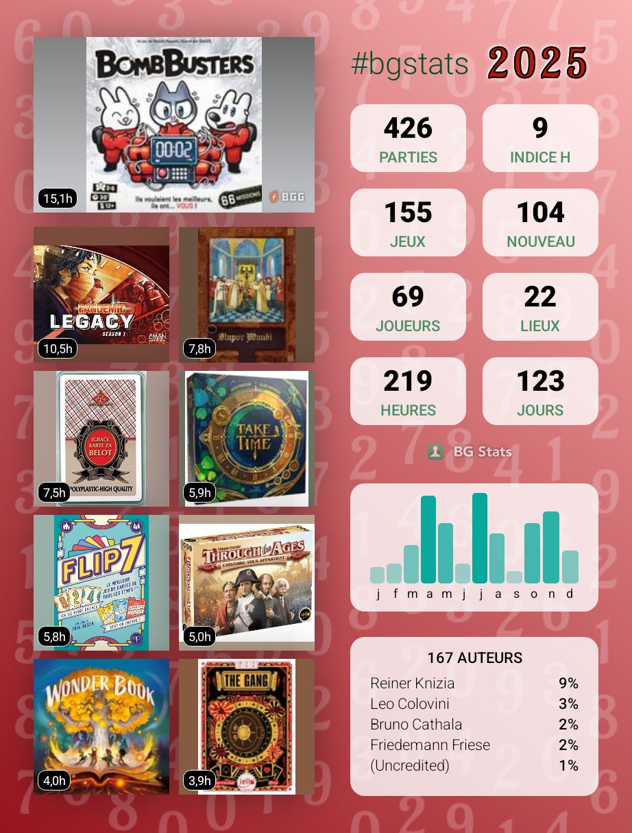 Alors 1000 parties environ de 125 jeux ( dont 54 nouveaux ), je suis dans ma moyenne annuelle.