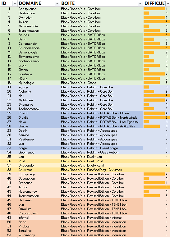 Chaque Domaine étant de 36 cartes