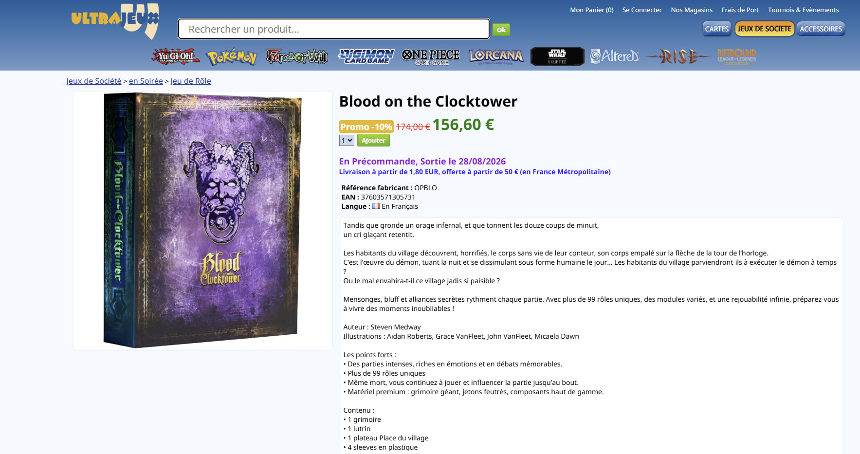 Oui il est déjà listé sur Ultra Jeux et franchement pas cher Blood on the Clocktower - Jeux de Société - en Soirée - Jeu de Rôle