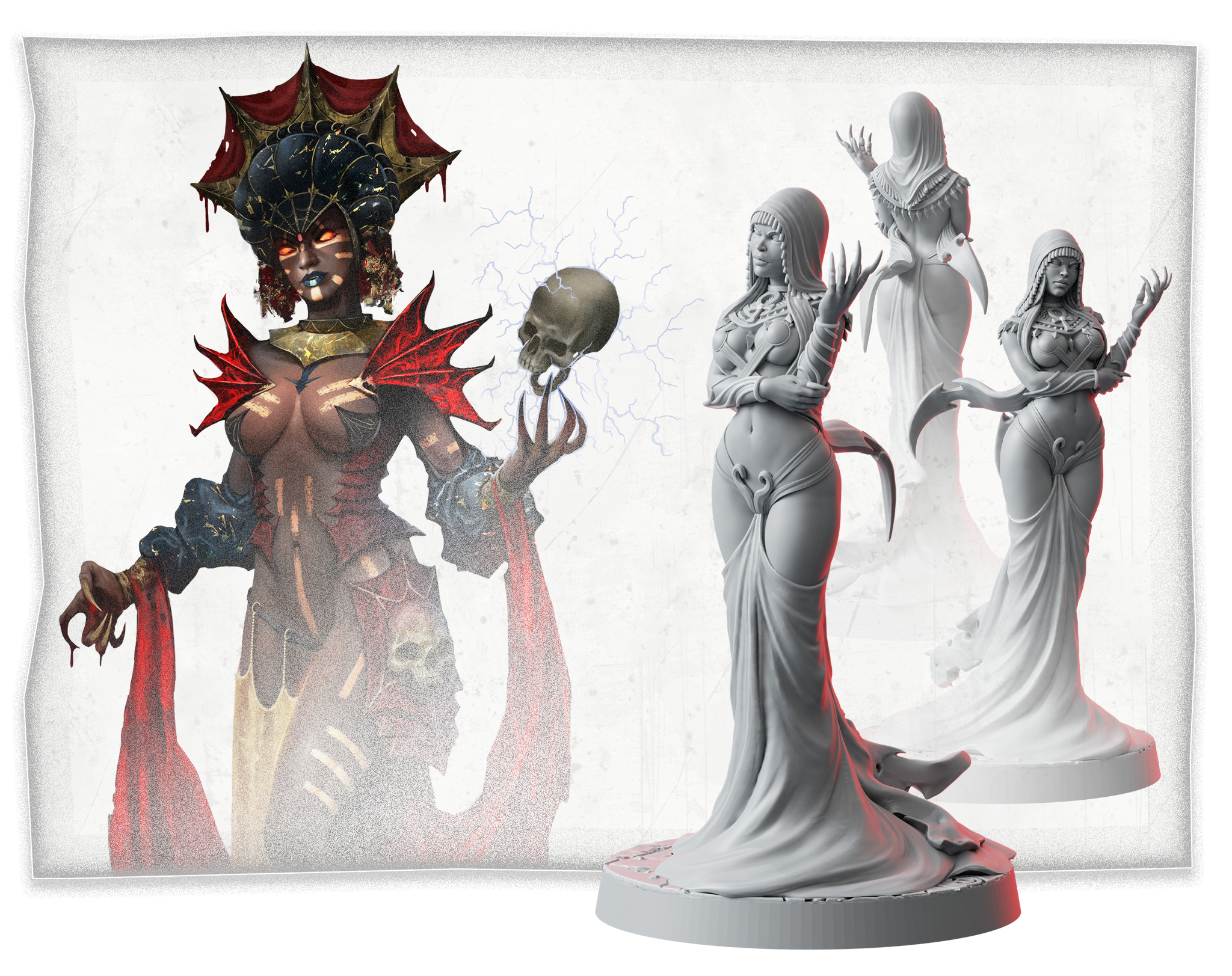 But now that Spiel Essen is over, let’s get back to talking about miniatures, and today we’re showing you a new sculpture: Lilith, the Blood Queen, mistress of seduction and death.