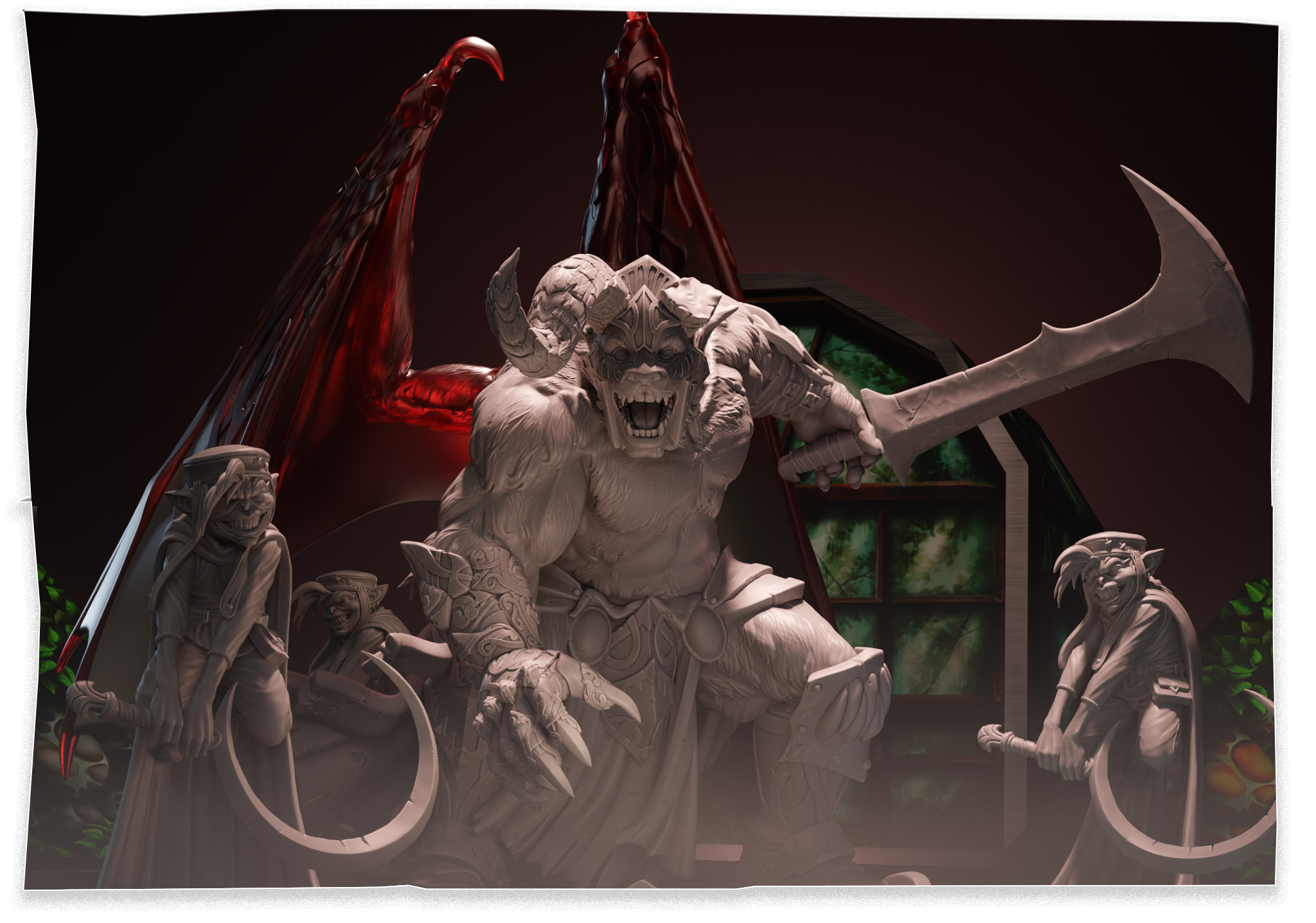 Ahriman is one of the rare cases in which the miniature was created directly by our 3D Lead Artist, Fernando, specifically.