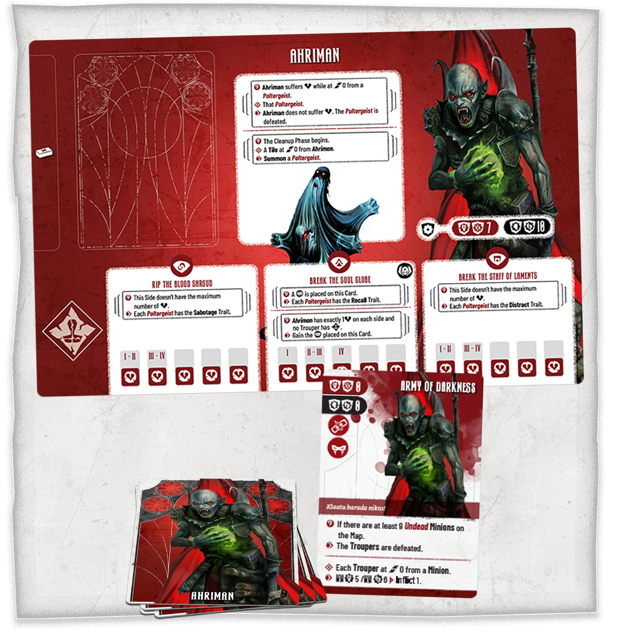 Now, let’s see what Ahriman gets up to when the Troupers find the courage to face him by taking a look at the Nemesis Sheet and Reaction Cards.