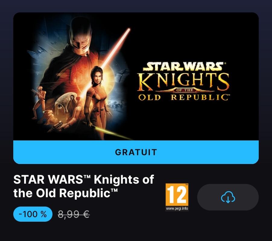 et en jeux mobile EPIC GAMES offre KOTOR 1 et 2 :