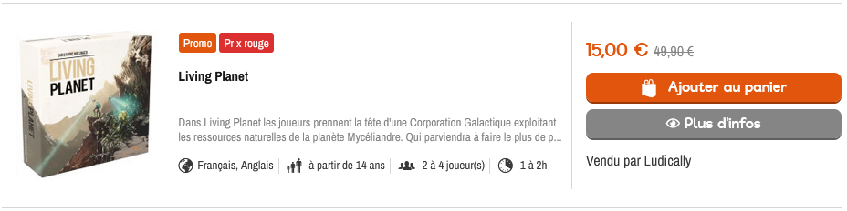 Lol, toujours moins cher. Dommage que ce soit expédié par Ludically (6€ de fdp, je sais que ça reste peu cher vis-à-vis du temps humain + coût d’emballage & d’expédition mais ce n’est pas combinable avec d’autres jeux), j’ai bien envie de l’essayer depuis que j’ai vendu mon pledge avant réception (120€+fdp à l’époque, mais avec des extensions).