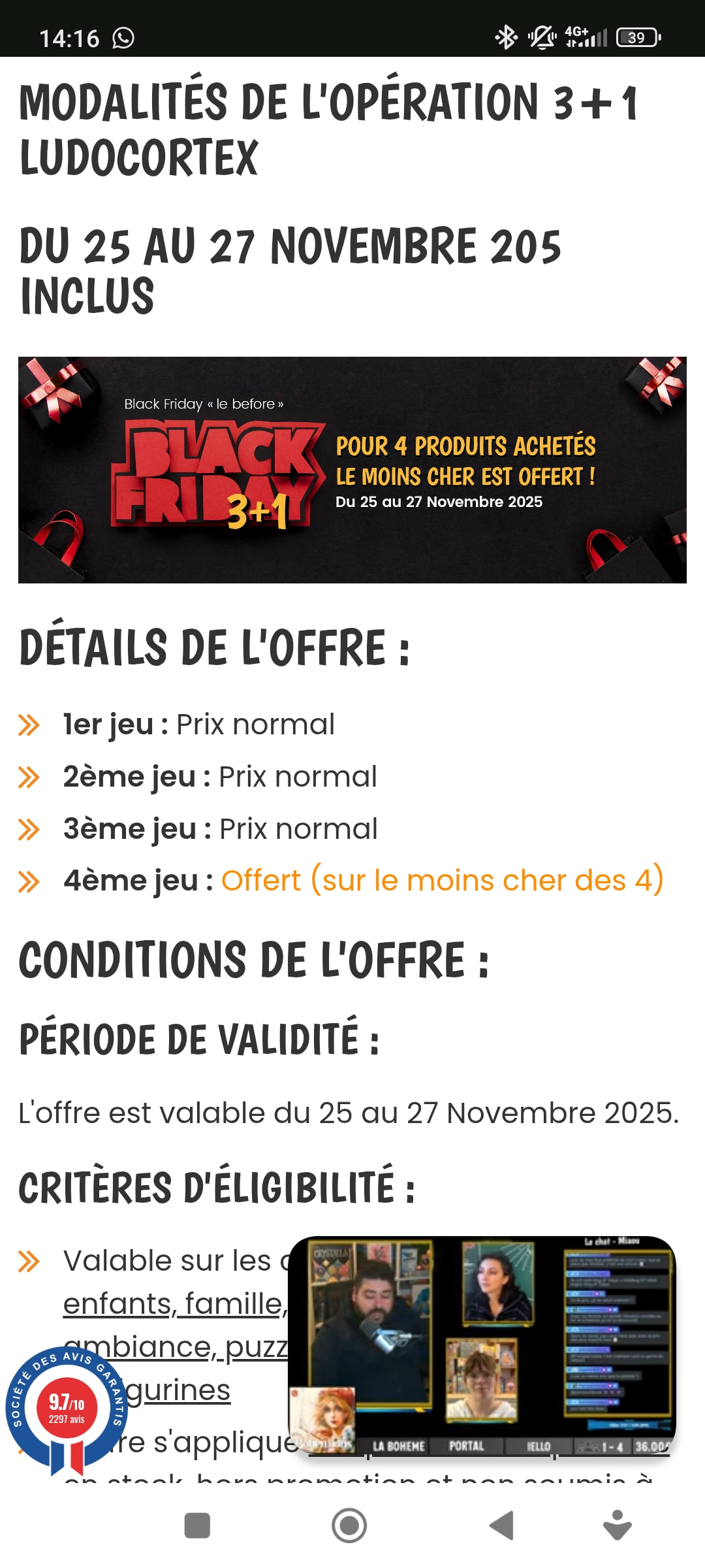 Ya une offre pour le Black Friday Chez Ludocortex 3+1 gratuit.