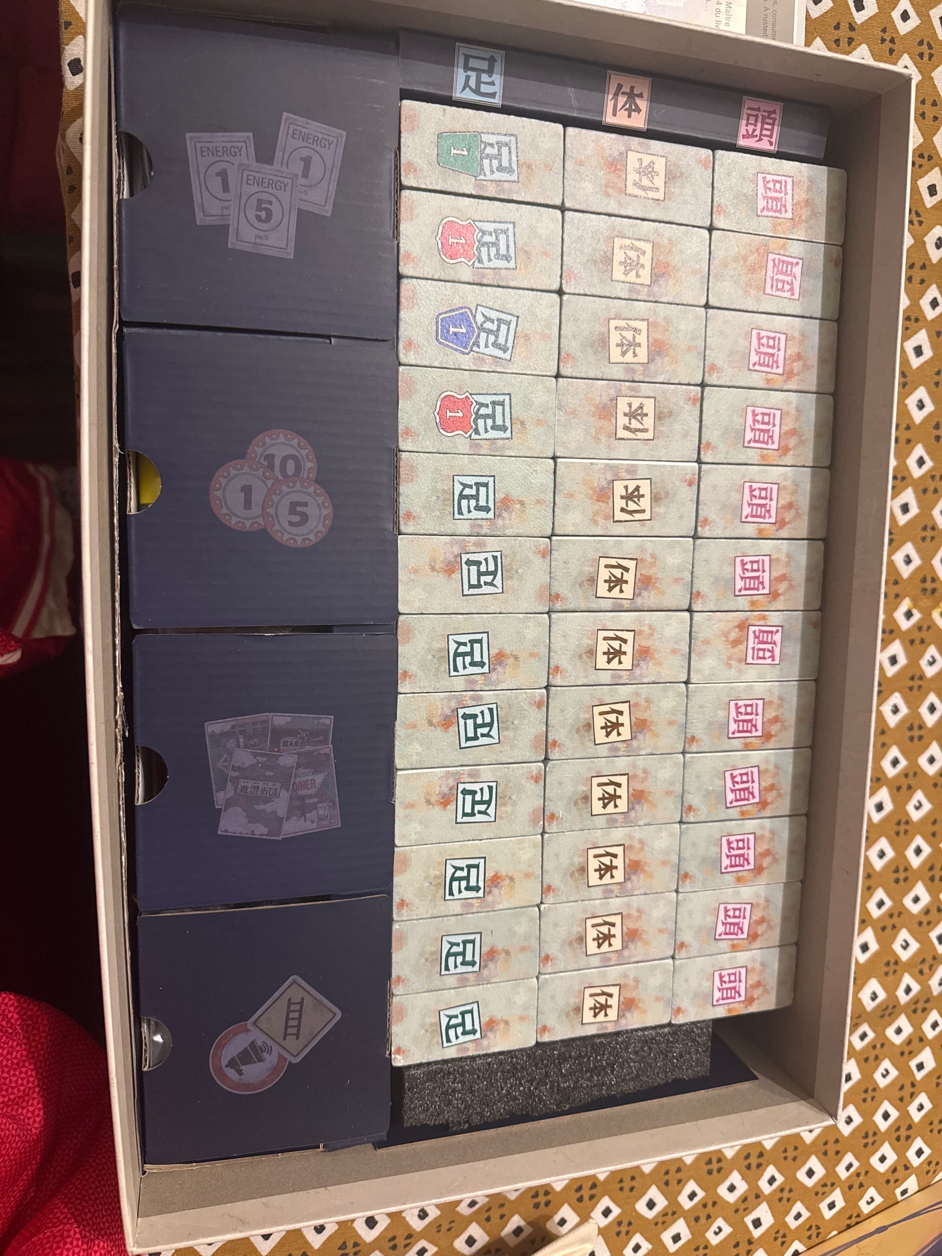 Moi j’ai mis les kikai dans les compartiments des tokens et les aient rangé dans l’autre sens (en colonne), c’est plus moche mais je ne déchire rien.