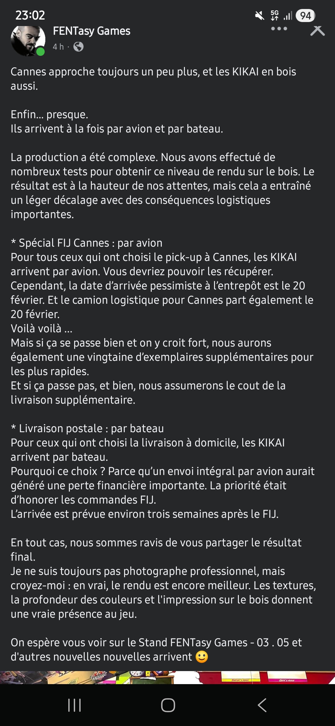 Plutôt fin mars pour les expéditions :