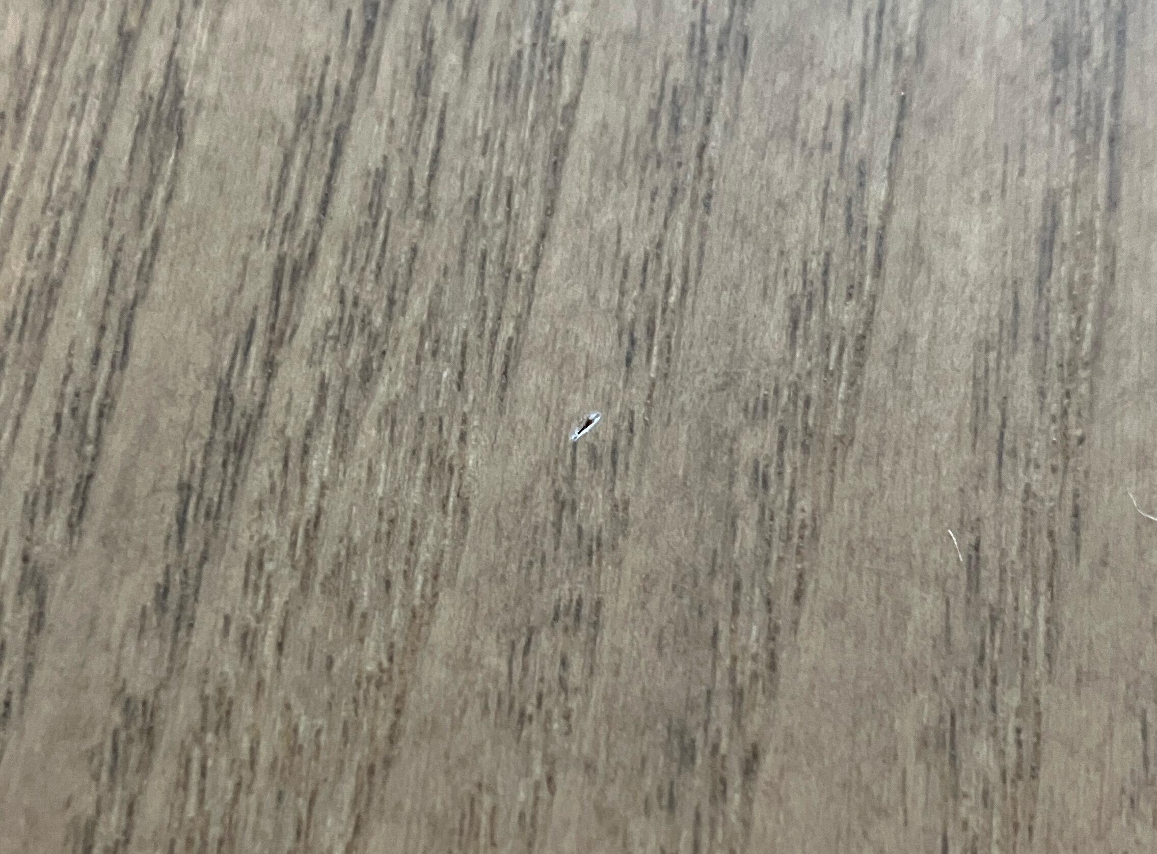 A part la pâte à bois, je vois pas trop de solution… Mais il faut trouver la bonne teinte et surtout en mettre très très peu (le trou a l’air minuscule).