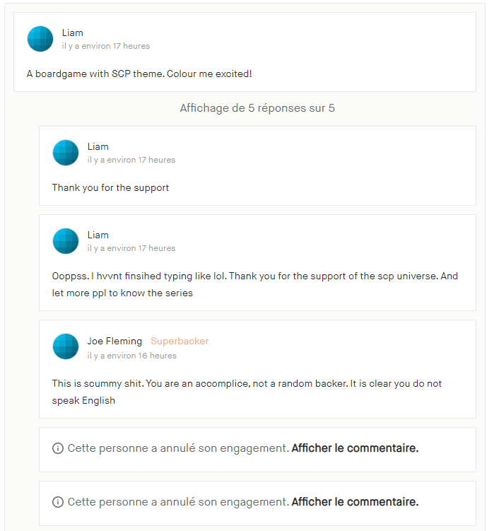 Tu sais, mon post avec leurs faux comptes à lancer la fureur d’un superbacker qui s’est grave lâché dans ses commentaires