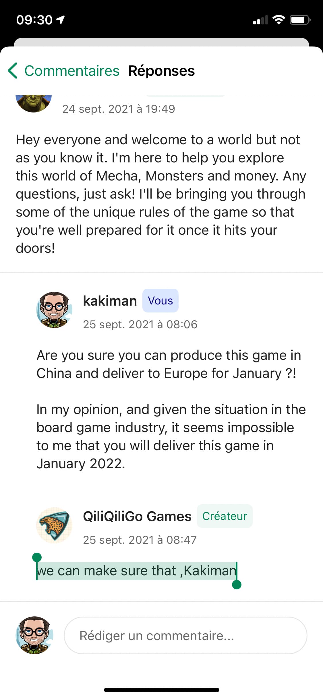 Et puis l’usine utilisée « The factory we chose is a very experienced Chinese factory. They have first-class printing equipment and manufacture many well-known tabletop games. »