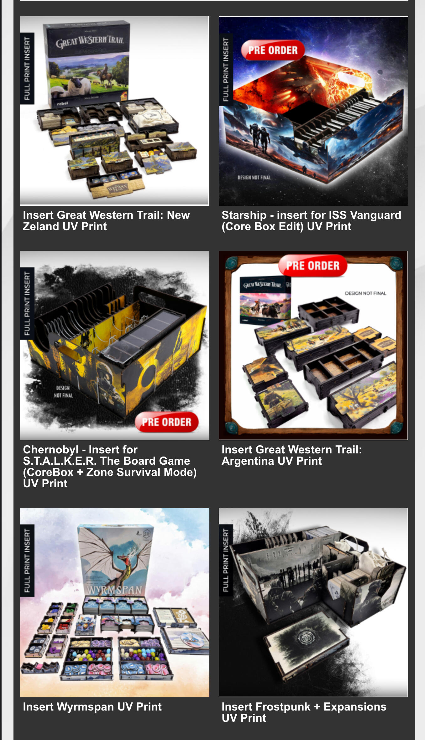 Nouvelle saison le 14 mai pour les inserts colorés de E-Raptor : https://www.kickstarter.com/projects/e-raptor/colorful-inserts-with-artworks-for-popular-games-4?ref=cwowd