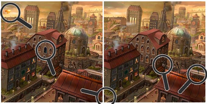 Voici deux images d’une journée ordinaire dans la Cité. Les gens se promènent, s’occupent de leurs affaires, les usines fonctionnent à plein régime et les gardes patrouillent dans les rues. Pourtant, il y a quelque chose de différent que seul un œil attentif peut remarquer. Serez-vous capable de trouver toutes les différences ?