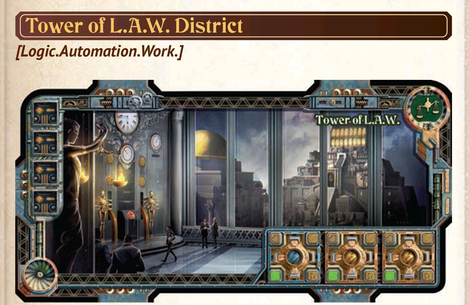 Le sachant, les révolutionnaires devront donc attirer les serviteurs de la Grande machine dans d’autres districts pour s’ouvrir un passage dans le Tower of L.A.W. Peut être en affaiblissant des districts à tel point qu’une émeute pourrait y être envisagée… Mais la Grande Machine va t elle tomber dans le piège ?