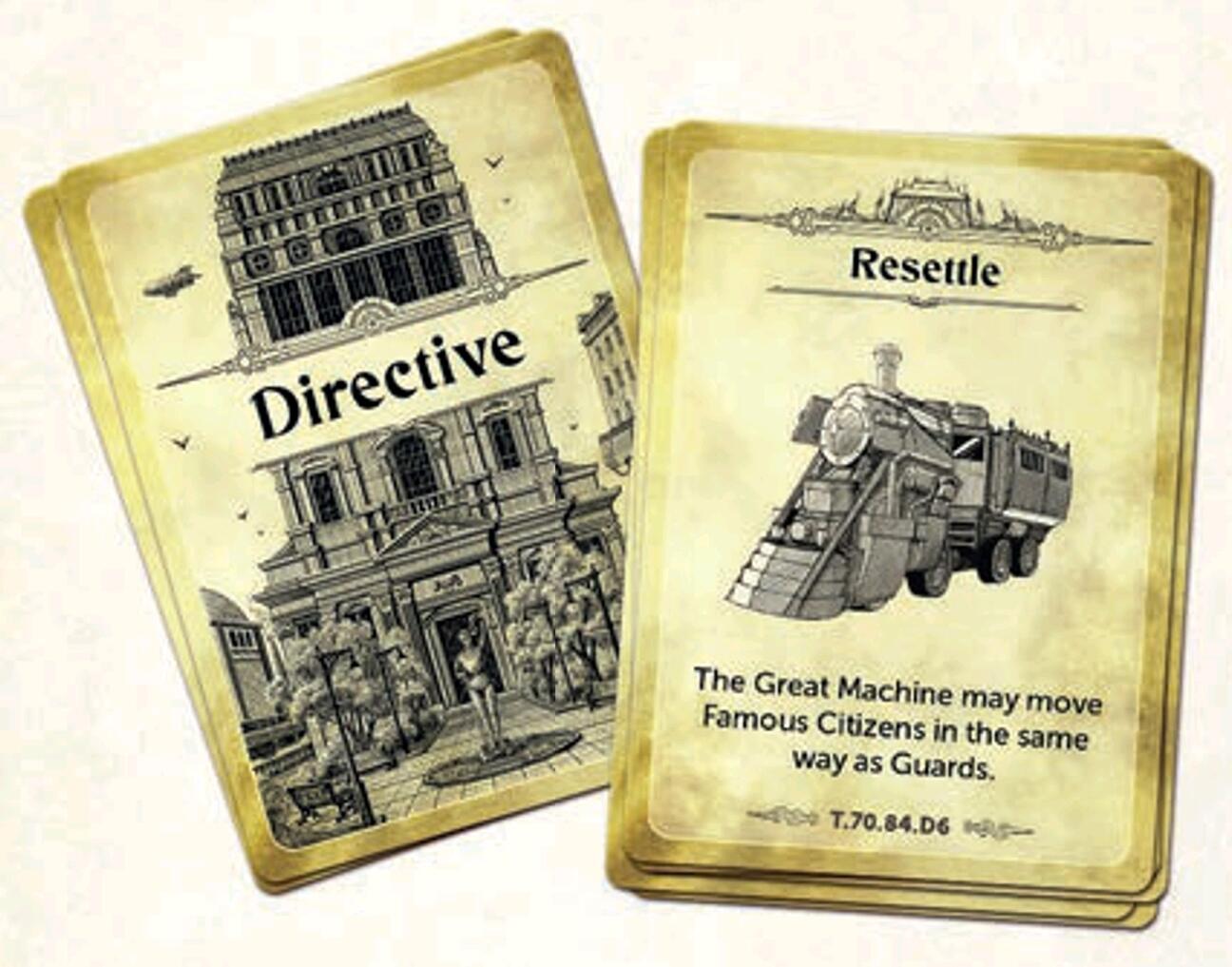 La Machine peut publier jusqu’à 4 directives. Si elle veut en publier une autre elle devra en defausser une. Une fois posées, les directives restent en jeu en permanence, sauf si les révolutionnaires arrivent à les faire annuler en se rendant dans la Tower of L.A.W