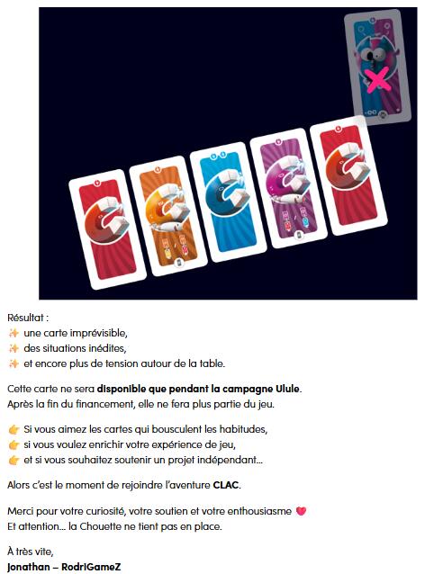 J’ai vu seb parler de jeu de pli, pour CLAC on est vraiment pas sur un jeu de pli, c’est une mécanique de rapport de force (ca me semblait important de préciser) on place des cartes dans une ligne de jeu et faire CLAC-er des cartes chez les voisins leur colle des malus
