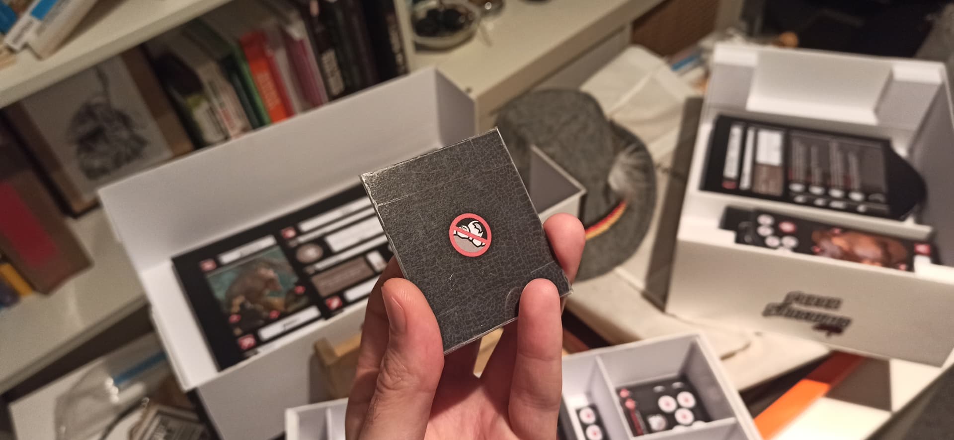 J’ai tout fabriqué en impression couleurs / carton plume / protection plastique (genre couverture transparente de cahier-spirale) / verso en autocollant texturé noir / boîte de rangement homemade avec autocollants du logo… À ce niveau là ça m’a pris vraiment pas mal de temps