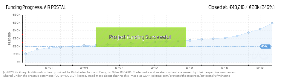 Le contre exemple parfait est air postal qui avait financé au bout de 2-3 jours justement. Mais avait une stratégie de communication complètement différente.