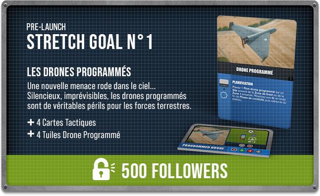 Quatre nouveaux pions « drone programmé » font leur apparition : deux bleus et deux rouges, accompagnés de 2 cartes tactiques chacun permettant leur déploiement.