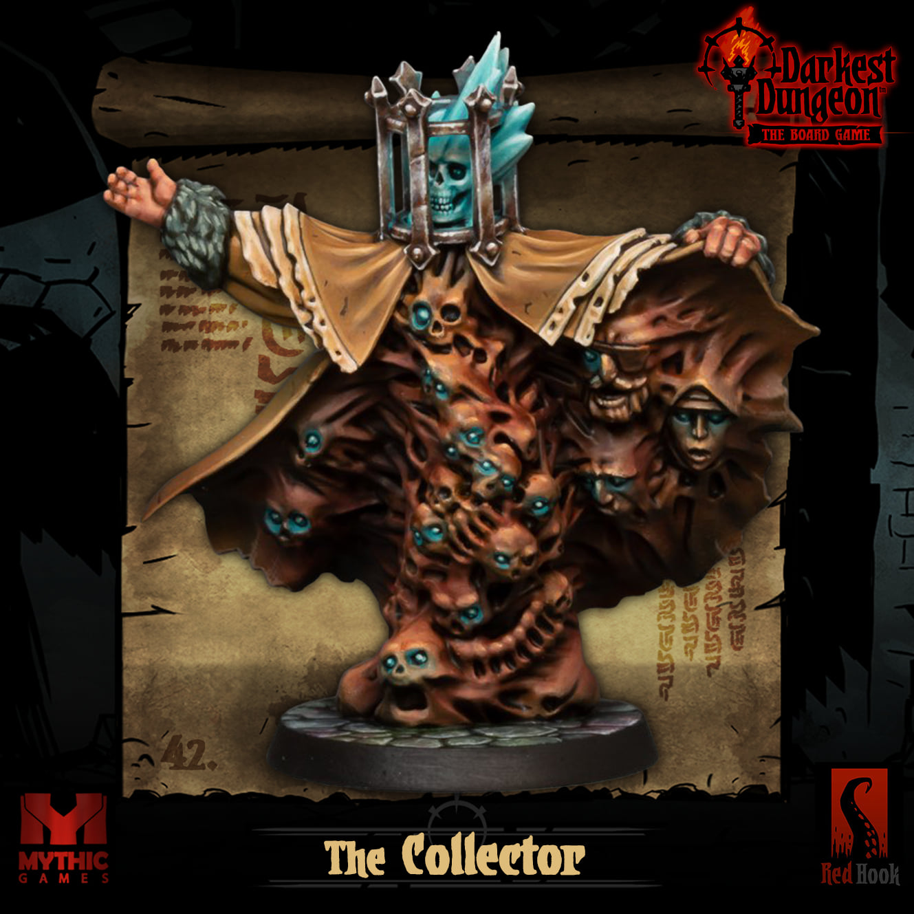 Le collecteur est une créature imposante et effrayante venue d’un autre monde. Cet Eldritch cauchemardesque flotte au dessus du sol tel un spectre. Son pouvoir principal Appel de la Collecte (Collect Call) lui permet de d’invoquer des parodies grotesques de certains de nos héros. Le fantôme du Brigand de grand chemin provoquera des saignements à vos héros. La revenante Vestale, quant à elle pourra guérir son maître ou encore augmenter la puissance de sa terrible attaque Drain de Vie (Steal life). Une dernière invocation, l’homme d’arme, vient quant à lui protéger Le Collectionneur en prenant les coups à sa place. Ce Boss vous donnera du fil à retordre, mais la récompense en vaut la peine.