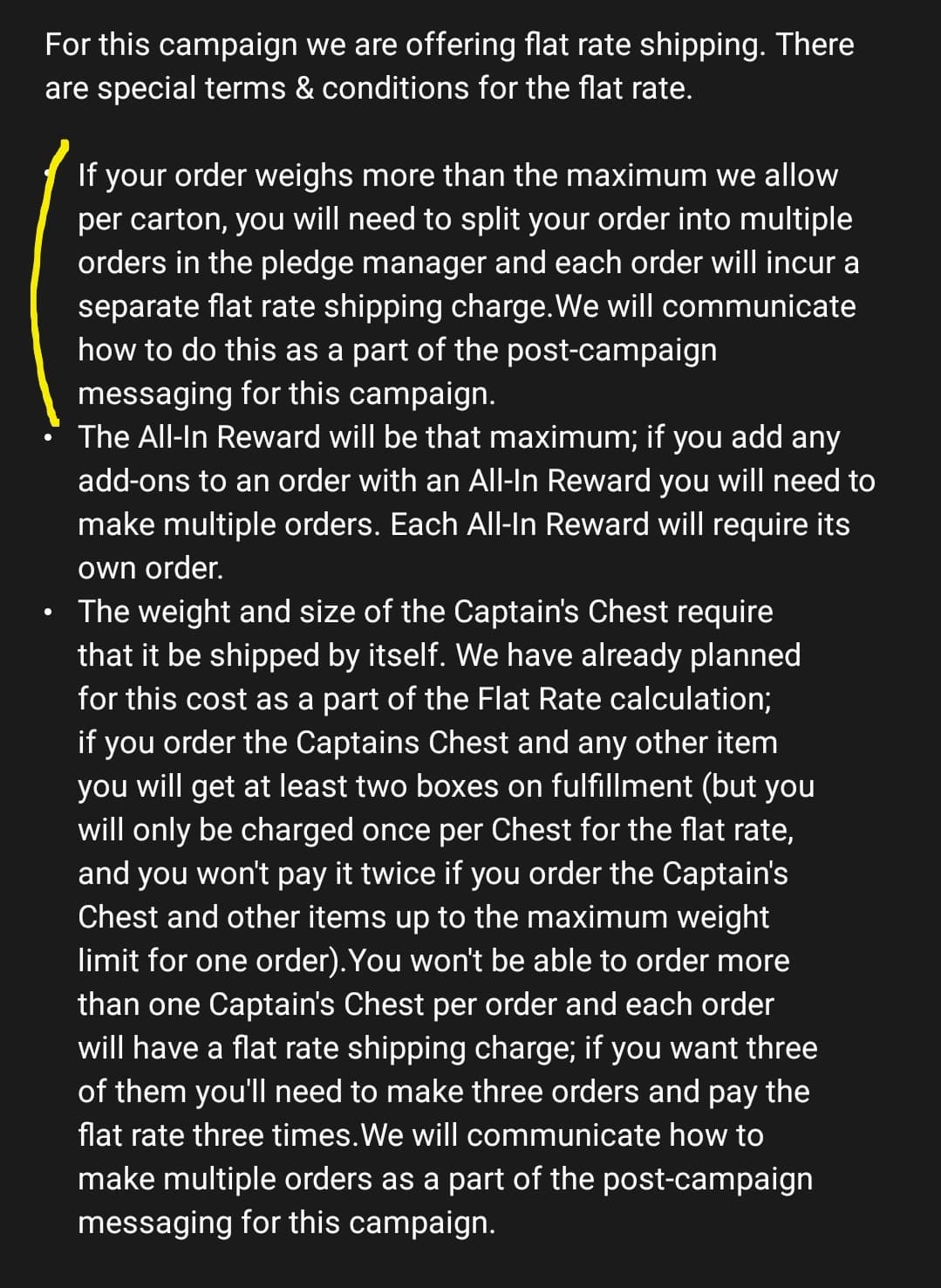 Ils indiquent bien que si le poids total dépasse le max qu’ils se sont fixés pour le flat shipping, ils demanderont de faire plusieurs envois flat shipping.