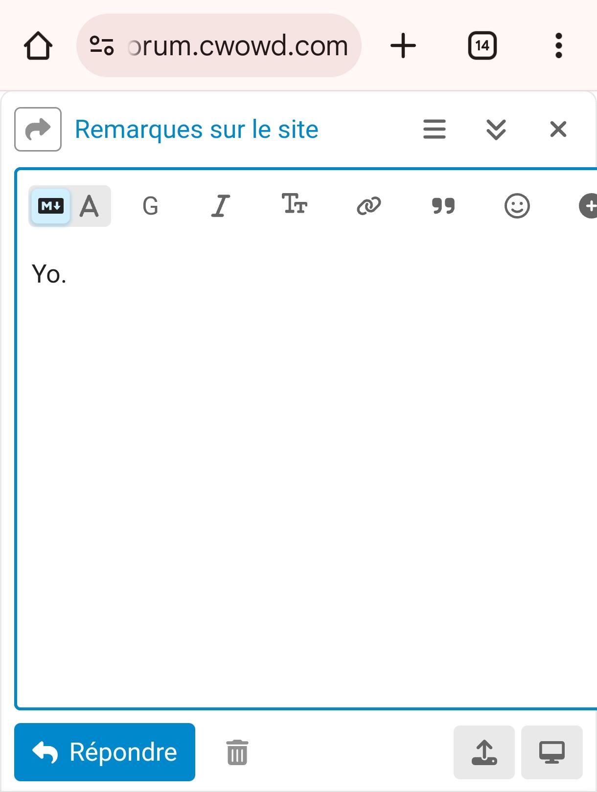 Et j’ai le même en passant de Markdown à Wysiwyg et inversement. Faut un pinch pour redimensionner son écrane t ensuite c’est bon ('putain que c’est chiant leur nouveau système)