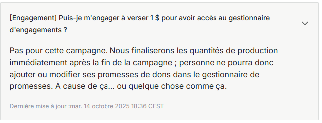 Leur intention sont louable pour le commerce mais de là a forcer la main pendant un KS, c’est débile. Chacun y va de son commentaire pour dire qu’il ne veut pas ça ou ça…