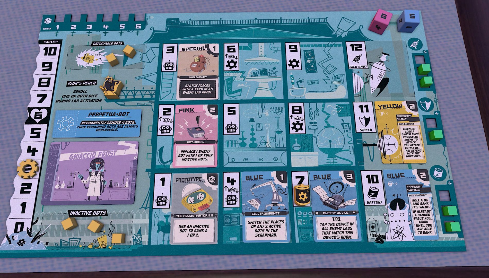 Difficile de décrire ce jeu. Un euro PvP avec placement d’ouvriers basé sur des lancers de dés ? Le but est de construire un rayon laser et d’éliminer ses adversaires. Assez intriguant comme jeu. Je vous conseille d’aller lire les Design Updates sur BGG, ils sont très intéressants et ça promet !