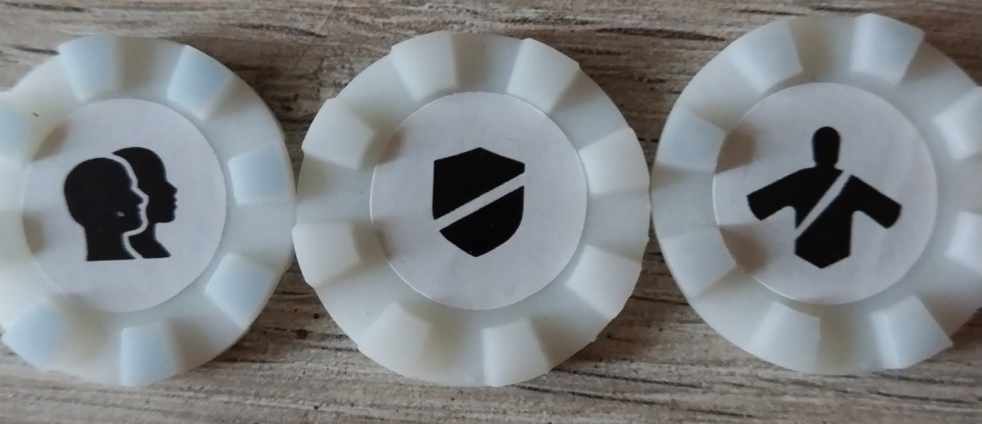 Le seul matériel (DU PROTO) qui casse un peu cela, ce sont les pions agents et cette couleur blanche :
