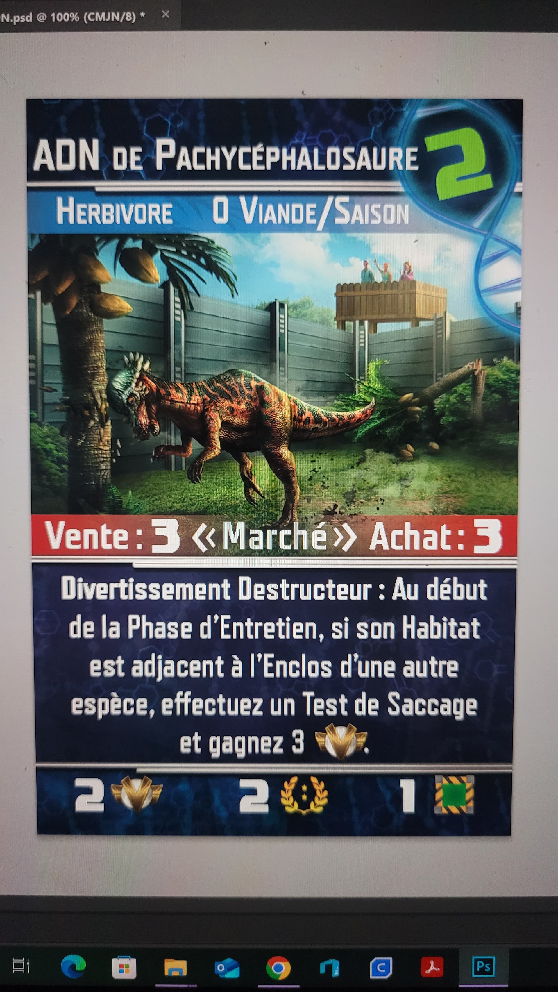 Du coup malheureusement il n’y avait pas de dino sur 2 lignes dans la boite de base et je ne sais donc pas le choix éditorial qu’aurait fait la BDJ. Nous allons donc rester ainsi.