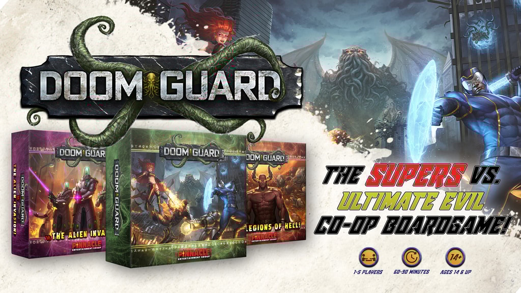 PEG, surtout connu pour le RPG Deadlands et qui bossait avec MG sur l’adaptation de celui-ci en board game, va lancer en janvier prochain une campagne de crowdfunding sur Gamefound pour un autre jeu de plateau, Doom Guard. Au programme, des superhéros et Cthulhu réunis dans le même univers pour du coop de 2 à 5 joueurs.