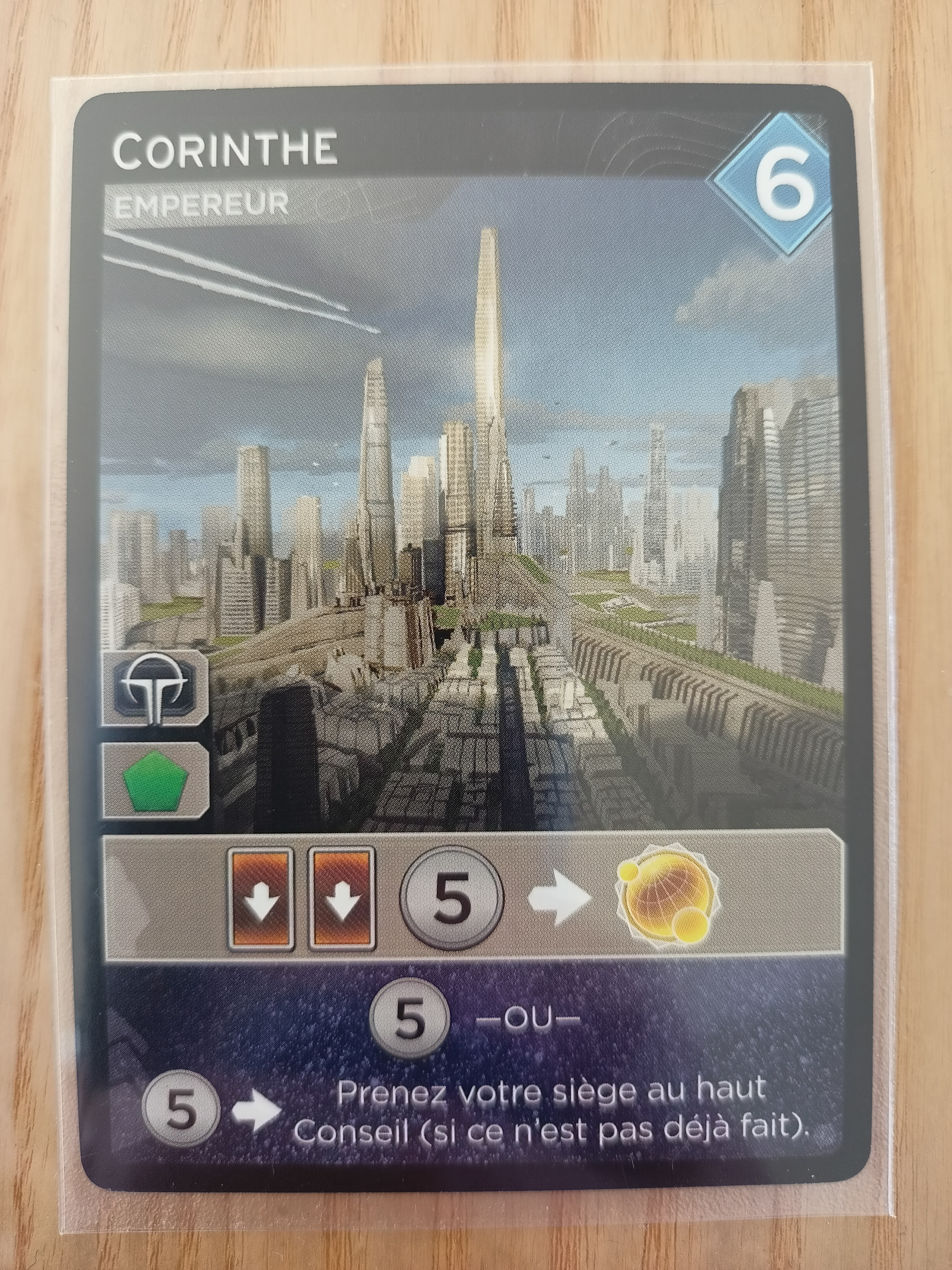 Déjà que je trouvais cette carte top tier dans insurrection sans extension. Mais avec l’ajout de lignées qui renforce les emplacements verts et empereur et la valeur des solaris, Corinthe devient à mon sens une des toutes meilleures cartes du jeu.