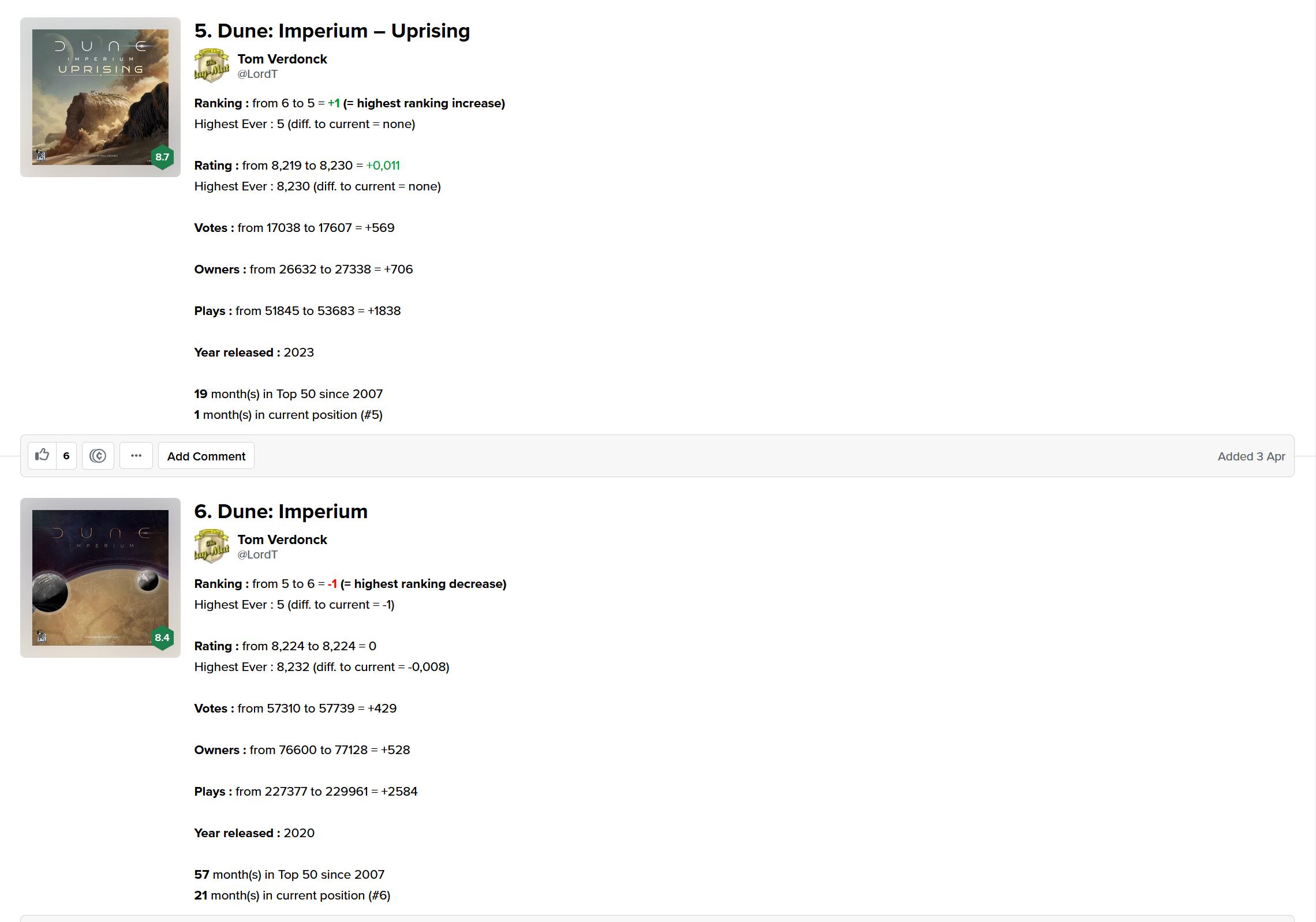 On sait comment ça finit : dans les deux sujets ça va parler des expériences de jeu dans Dune en général sans forcément en lien avec le sujet initié (6 joueurs). Et on aura deux sujets on y joue.