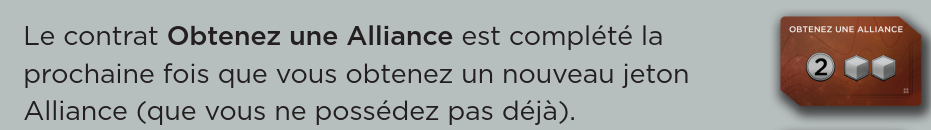 Il faut gagner une alliance ultérieurement. Une même alliance peut être perdue et gagnée plusieurs fois. Parfois car les joueurs se la dispute, parfois car il peut être intéressant de baisser d’un cran sur la piste d’influence d’une faction pour regagner le bonus à 4 d’influence.
