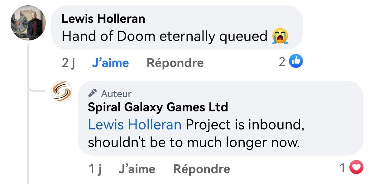 Bon ben, des news contradictoires, selon l’editeur le jeu est chez Spiral Galaxy, selon spiral Galaxy et leur dereniere news ils n’ont toujours rien recu …