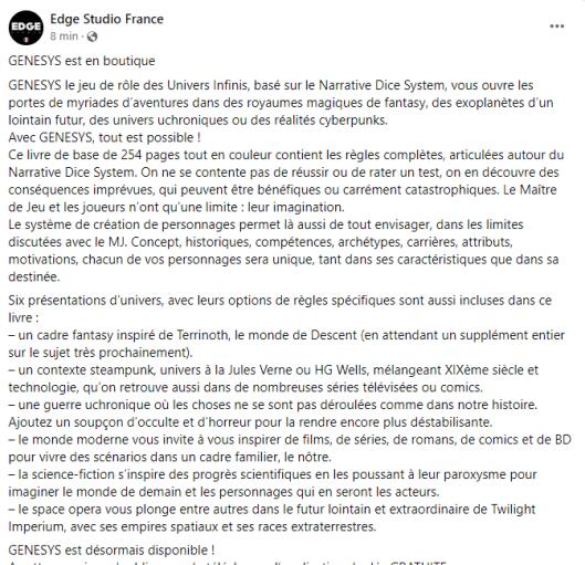 – Une aventure captivante qui vous plongera au cœur de l’action et qui permettra aux nouveaux joueurs de découvrir Genesys.