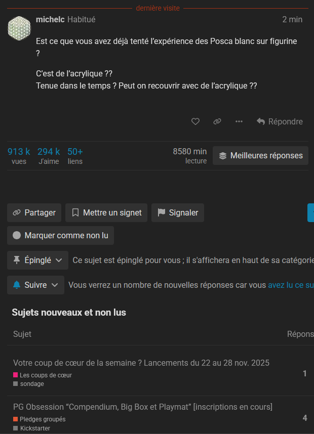 (Pour être tranquille, je clic sur la date en haut de la réglette qui permet de défiler les posts du topic pour arriver au premier message, au moins ça ne remonte plus auto et plus de saccade / lenteur)