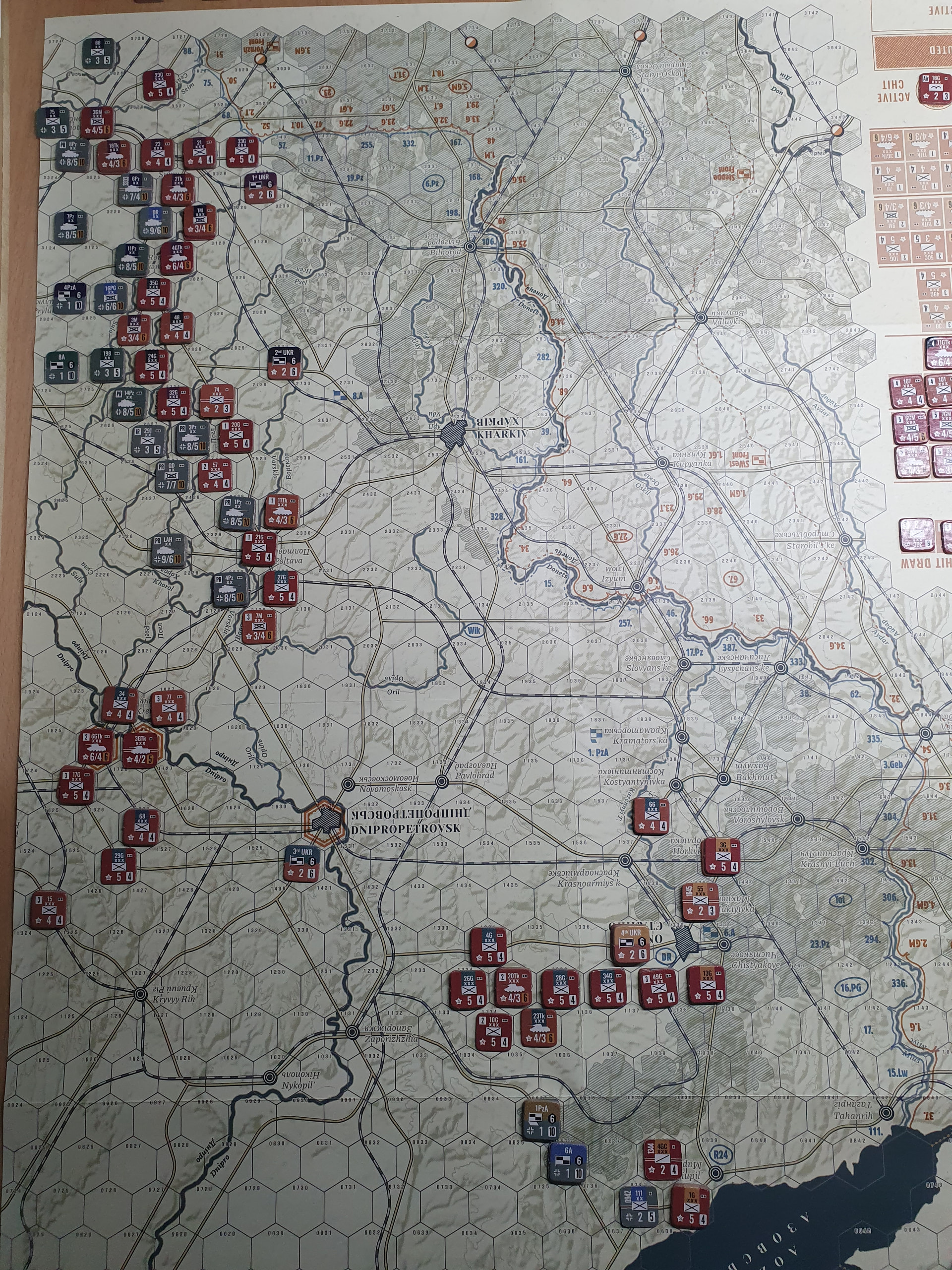Victoire majeur du russe. Coté allemand, j’ai trop attendu pour reculer au sud et au centre pensant le russe moins fort mais les renforts russes ont fais la difference. En fin de compte, on a tendance coté russe à vouloir faire la poussée au nord mais le terrain est moins propice pour creer des tetes de pont et l’allemand plus fort avec un grand nombre de division de panzer.