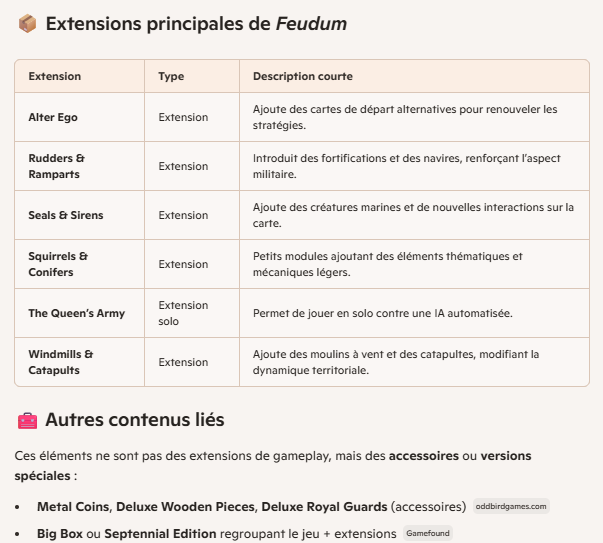 bon sang de bonsoir, je la retrouve plus: il n’y avait pas une liste de tout le contenu de Feudum quelque part? je cherche a acquérir un all-in pimpé mais impossible de retrouver ce document, alors que je crois que j’ai demandé ici même!
