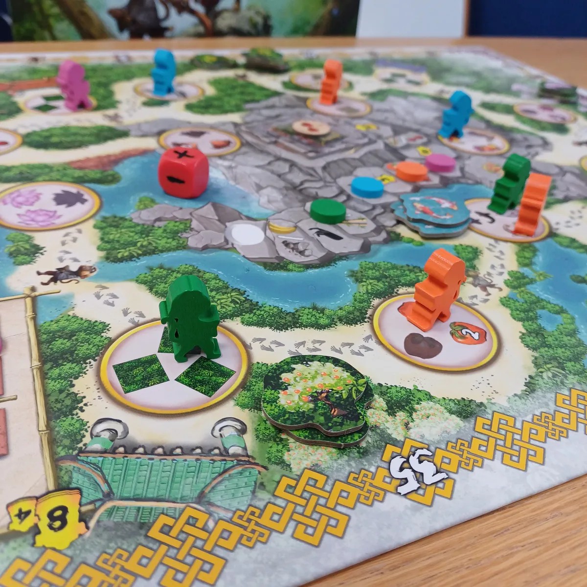 Zen Monkeys est un jeu de placement de tuiles, de collecte de ressources et de placement d’ouvriers.