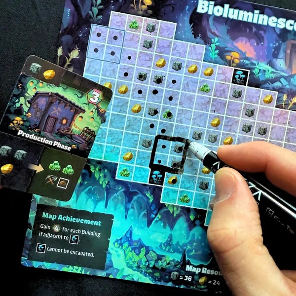 À chaque manche, les joueurs creusent des espaces sur leur carte afin de rassembler des ressources et de libérer de la place pour de nouveaux bâtiments, construisent des ateliers et des forges, puis exploitent ces derniers pour obtenir divers avantages.