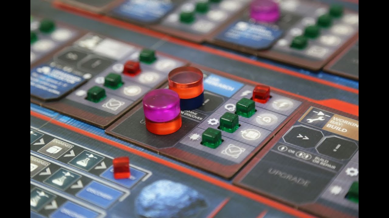 -Contrairement à ce que peuvent laisser penser les illustrations dans le livret de règle et l’almanach, on peut empiler autant de jetons actions (joueur+MEA) que nécessaire pour effectuer les actions d’Exploration, de Collecte, de Construction, ou de toute autre action car le COÛT de l’action augmente avec la DISTANCE.