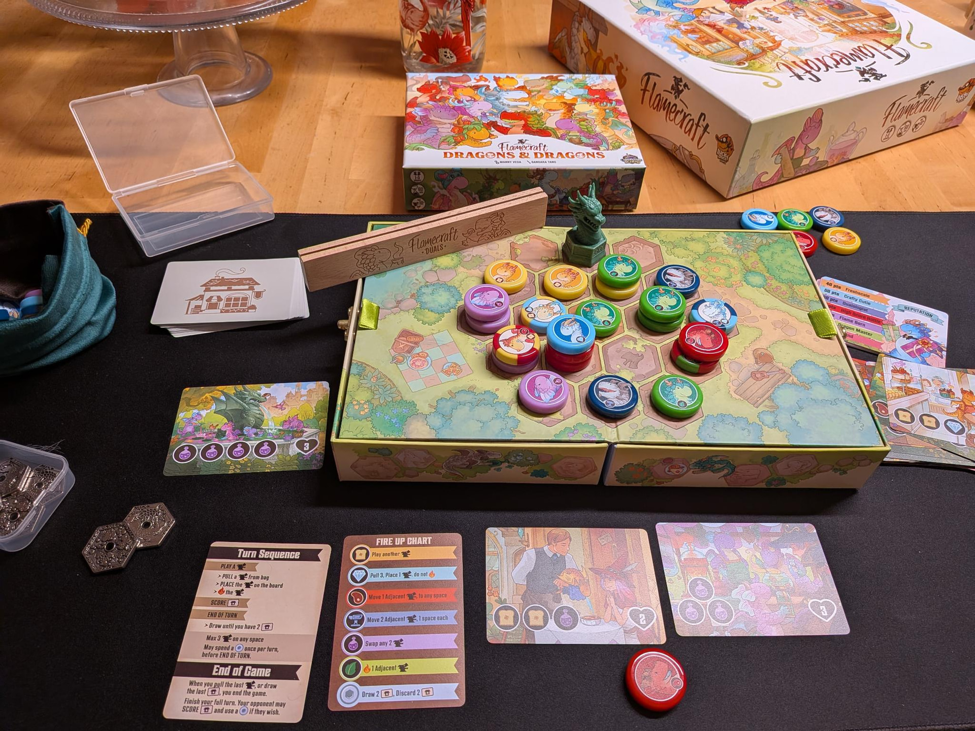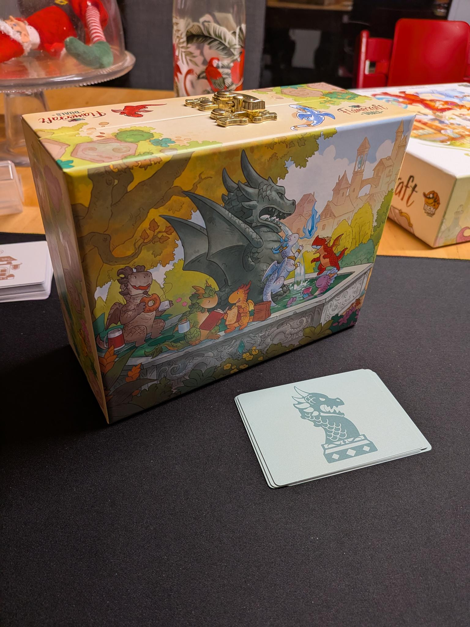 Jeu bien reçu, les peluches sont un peu plus grandes que les deux précédentes (comment ça on est ici pour parler du jeu et non des goodies ?). Je devrais tester l’extension de Flamecraft dans la semaine, pour Flamecraft Duals ça sera un peu plus tard mais le matos est top !